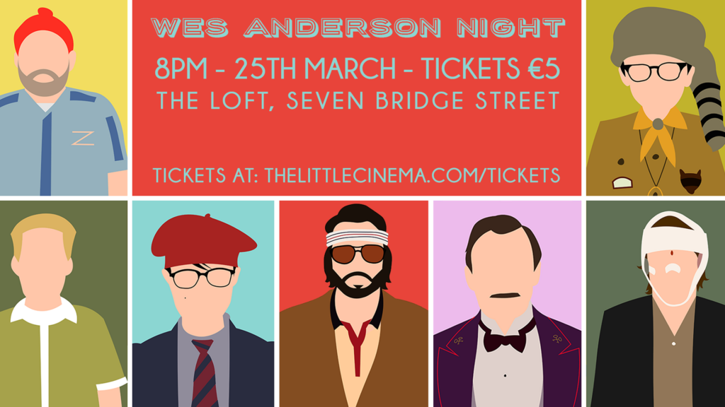 Our next screening is Wednesday March 25th in The Loft at Seven Bridge Street at 8pm and the theme is WES ANDERSON!