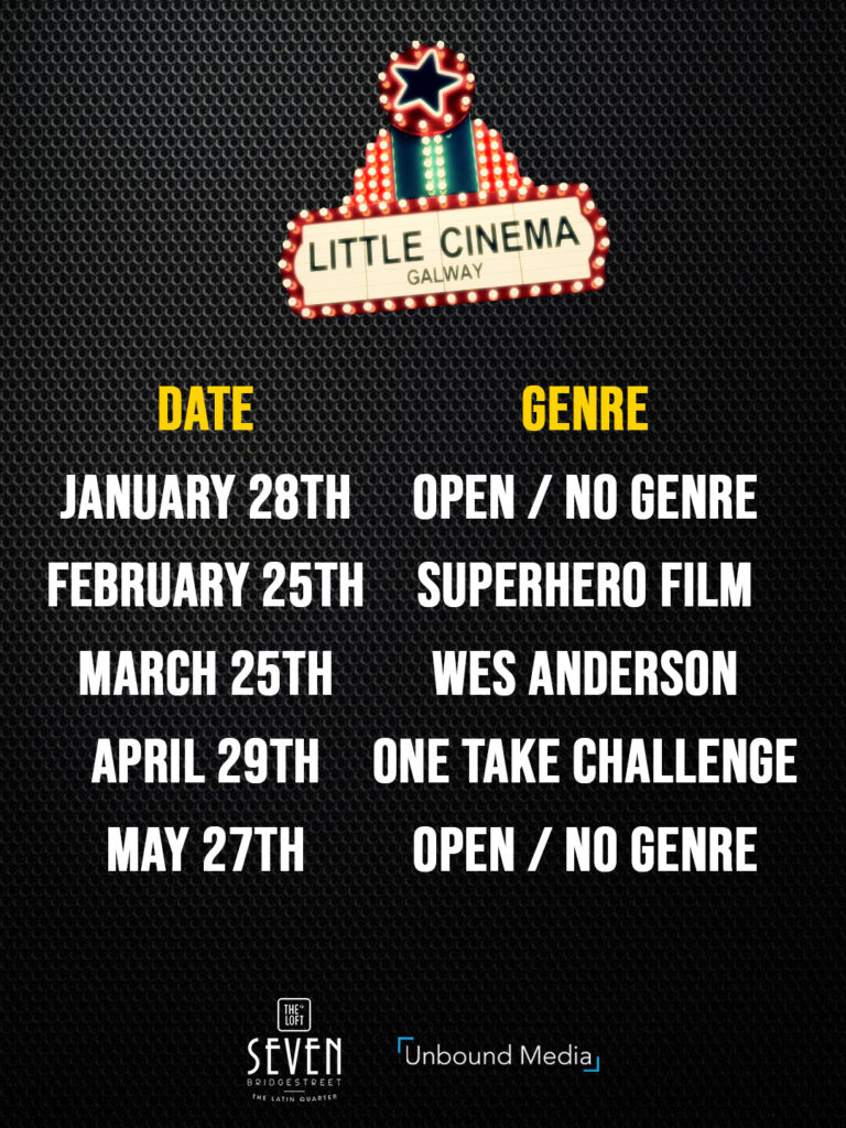 Get in touch at littlecinemagalway at gmail.com if you’d like to have something screened with us!